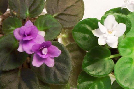 Optimara Little Apatite (6941) 11/19/1988 (Holtkamp) Single lilac long petals/lighter lilac back. Medium green, heart-shaped, hairy, glossy, serrated. Miniature |