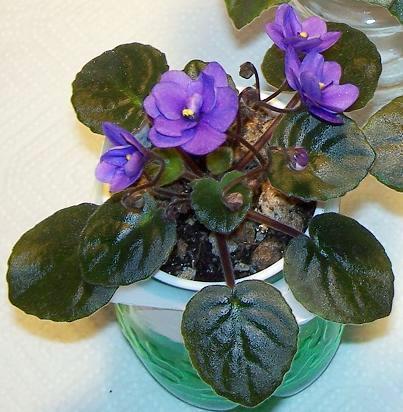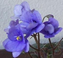 Optimara Little Turquoise (7919) 07/06/1993 (Holtkamp) Semidouble violet-blue. Medium green, ovate, glossy, hairy. Miniature. NOTE: Optimara lists the flower as light blue |