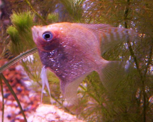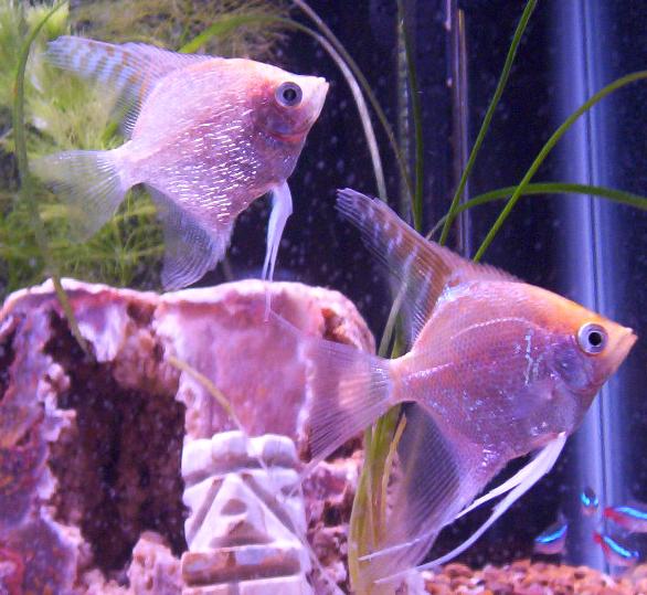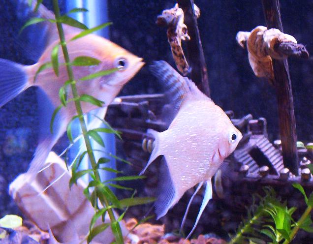 Dave's new Angelfish, a Golden Angel and a Pearl scale. Also, crab gets