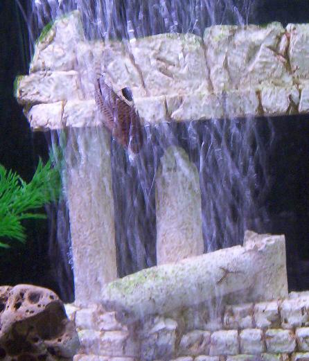 You can see him real well in this shot, swimming down against the current of bubbles |