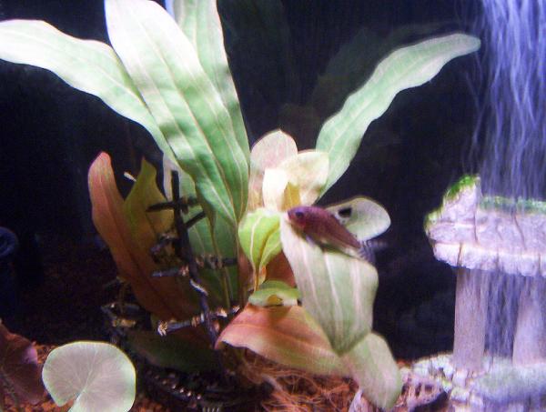 August 8th--two new fish! Black veil (actaully deep dark velvety chocolate color). |