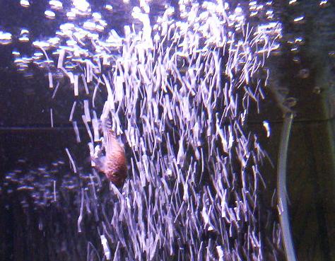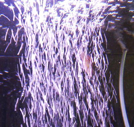 We installed a bubble disk and found the little Cory Cat named "Henry" swimming in the bubbles. |