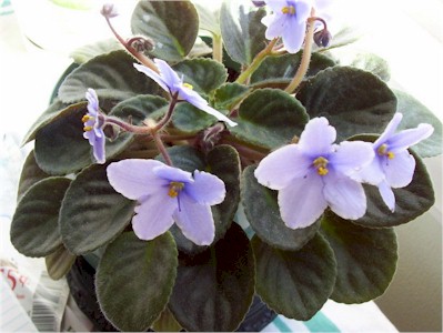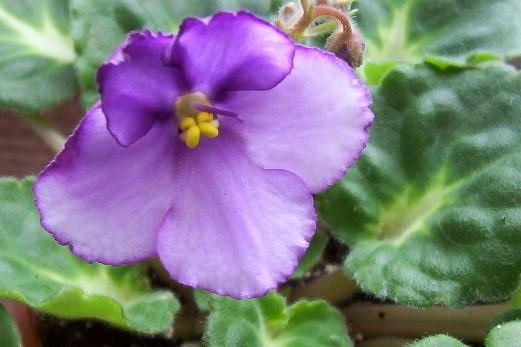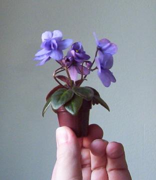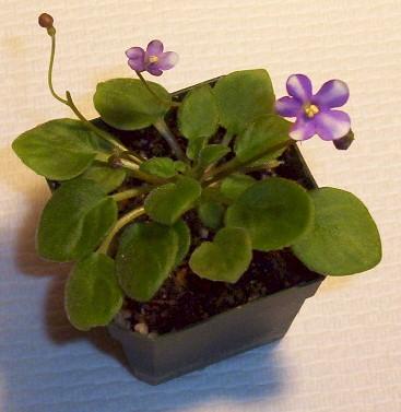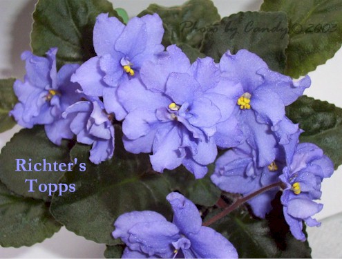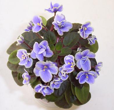 (H. Pittman) Semidouble medium blue/white edge. Dark green, plain. Miniature |