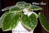 (8421) 03/08/1996 (H. Pittman) Semidouble white. Variegated medium green and white, plain. Semiminiature |