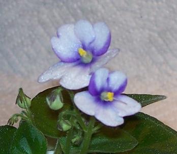 Optimara Little Aquamarine (7349) 04/11/1990 (Holtkamp) Single white/blue eye. Medium green, pointed, hairy, serrated. Miniature |