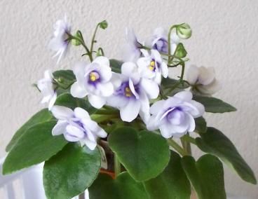 | Optimara Little Cheyenne | (7916) 07/06/1993 (Holtkamp) Semidouble blue and white/blue center. Light green, ovate, glossy, hairy, serrated. Semiminiature | ||||||||||||||||||||||||