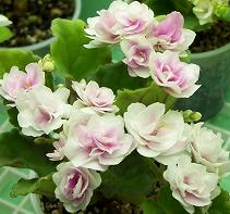 Optimara Little Emerald (Holtkamp) Semi-double white with dark pink center. Plain, medium green. Miniature |