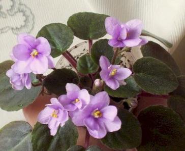 Optimara Little Fluorite (7490) 02/09/1991 (Holtkamp) Single-semidouble lilac. Dark green, plain, pointed, hairy. Miniature |