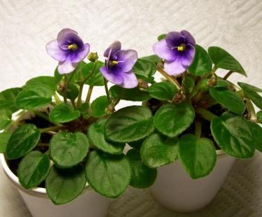 Optimara Little Opal (6955) 11/19/1988 (Holtkamp) Single white bell/purple-blue center. Light green, longifolia to heart-shaped, hairy, glossy, serrated. Miniature |