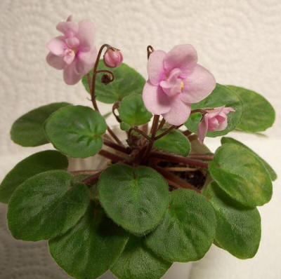 Optimara Rose Quartz (6969) 11/19/1988 (Holtkamp) Single-semidouble pink. Medium green, ovate, pointed, glossy, hairy. Miniature |