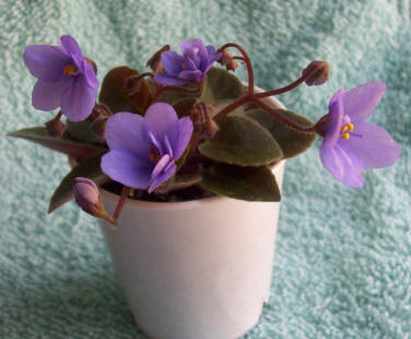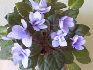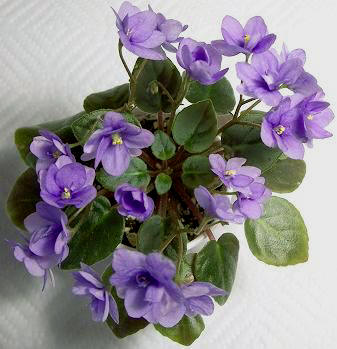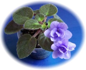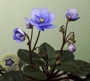 Optimara Little Turquoise (7919) 07/06/1993 (Holtkamp) Semidouble violet-blue. Medium green, ovate, glossy, hairy. Miniature. NOTE: Optimara lists the flower as light blue |