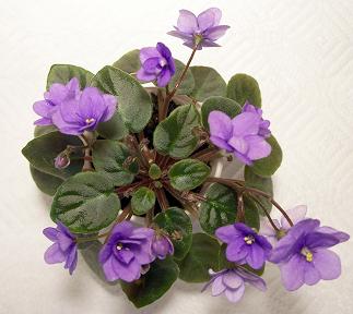 Indoor lighting (above). Sometimes the flowers look like semi-double stars with a cluster of anthers in the center and sometimes it blooms with semi-double pansies. No doubt the confusing bloom combinations confused retailers when they tried to match up plants and names. Sometimes I wonder if my plant is really a malformed Violet Sapphire.
