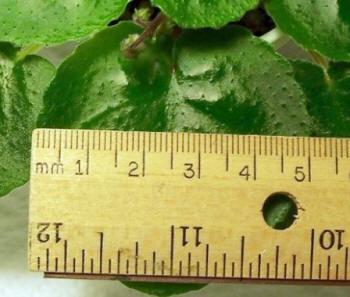 Small plant, huge leaves, about 5cm or nearly 2 inches!